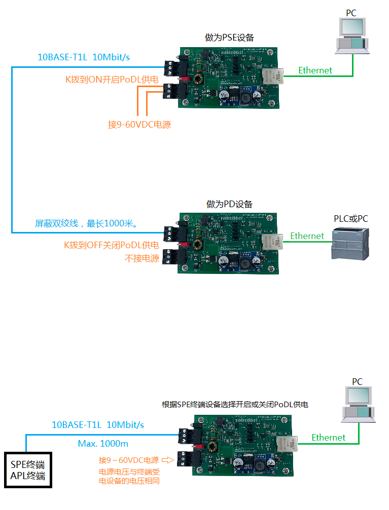 SPE通讯协议 | IEEE802.3cg-2019,10Base-T1L,数据透明传输,支持所有以太网上层协议,如PROFINET、MODBUS TCP/IP、Ethernet/IP、CC-Link IE、POWERLINK 等。 |