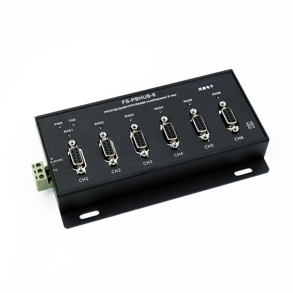 6-port isolated PROFIBUS/MPI/PPI hub. Realize PROFIBUS bus, star and hybrid network topologies to facilitate network cabling; Transparent data transmission without delay; Bi-directional extended communication distance and increased number of sites in line with the PROFIBUS standard; Rate: 0-1.5Mbps (or 0-12Mbps), self-adaptive; With communication indicator; 9-40VDC wide voltage isolated power supply; Power supply-RS485-RS485 completely isolated; Lightning and surge protection; Interface: standard DP socket; Bolt mounting on the back panel.